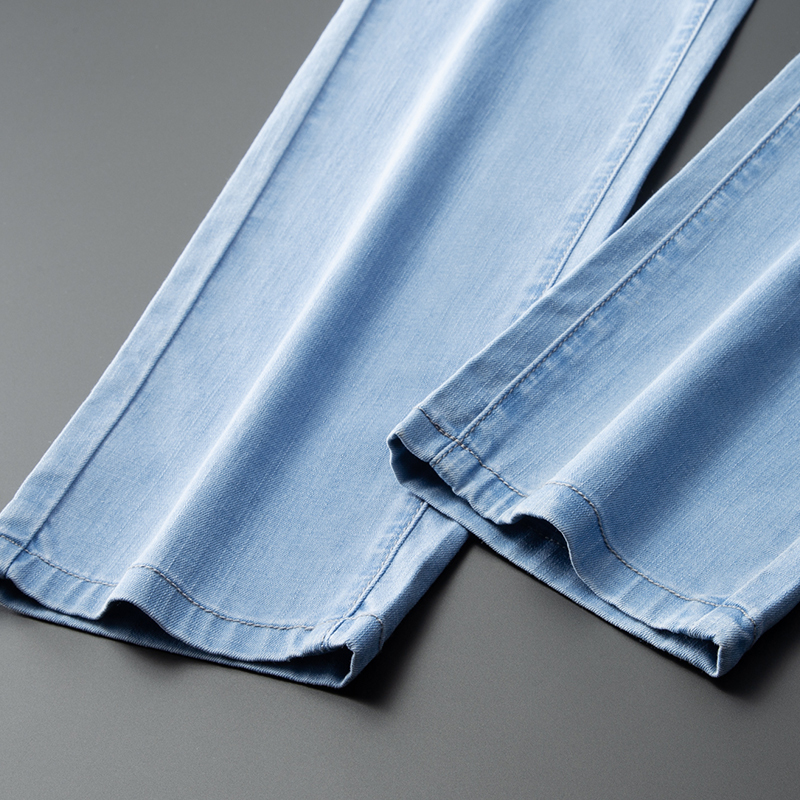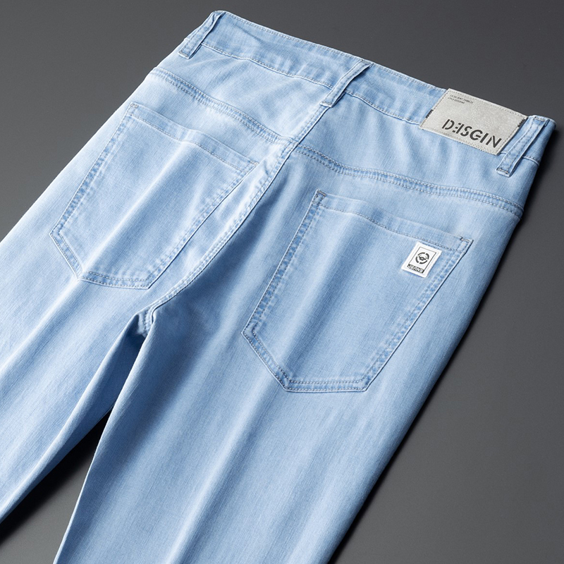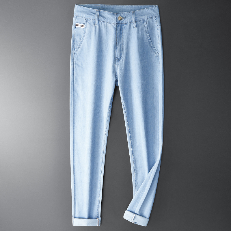 牛仔裤采用了水洗工艺,手感柔软,穿着舒适,修身的版型,上身效果很好,很显瘦,搭配一件T恤,就能轻松穿出潮男范。