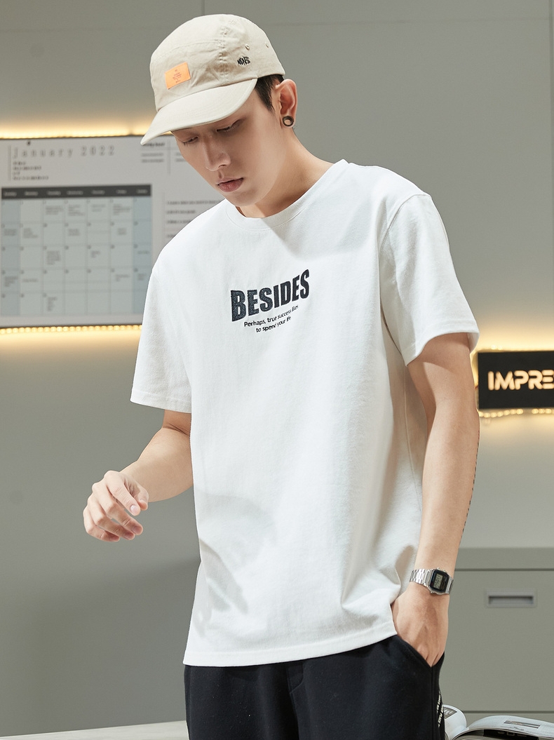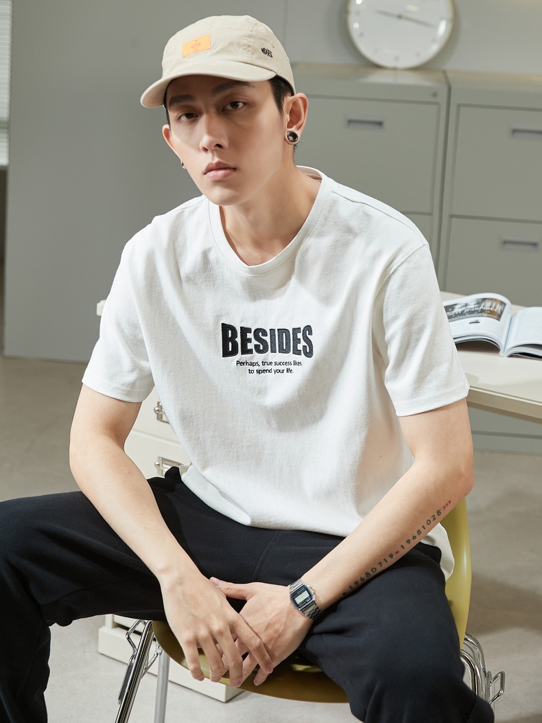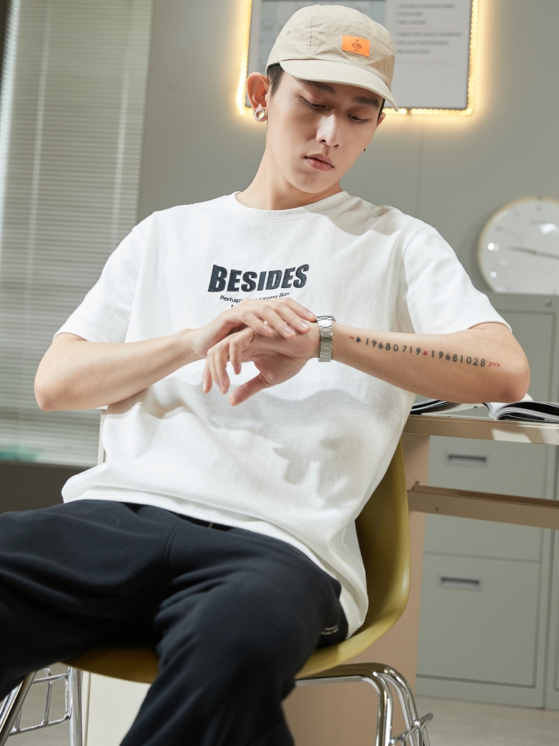 字母印花的设计,成为了T恤的吸睛点,让本身单调的白色T恤变得很耐看,简单基础款的圆领T恤无论谁穿都好看呀~