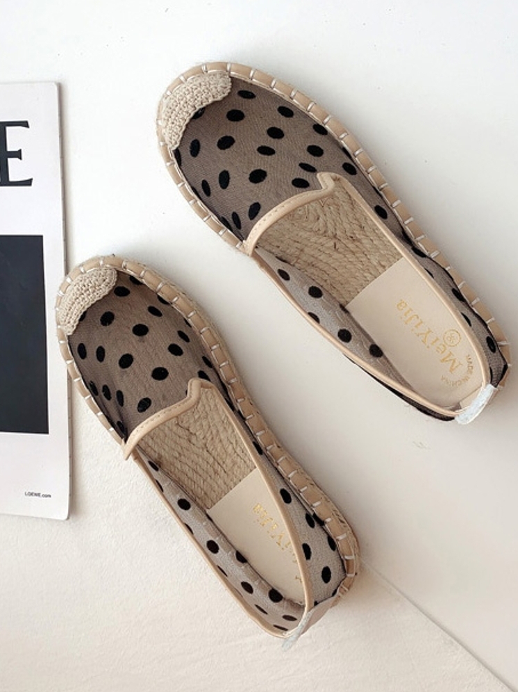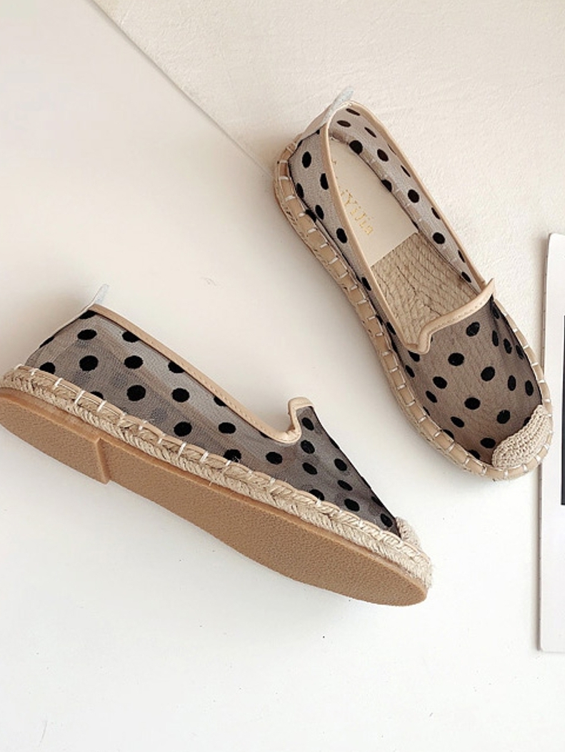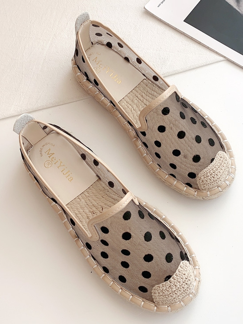 经典的波点很时尚,鞋面是网纱的很透气,夏季穿着清爽舒适,职场女性可以带上一双没事的时候换下高跟鞋放松放松脚。