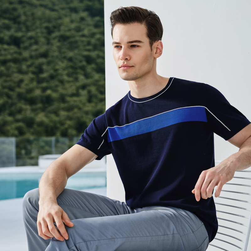 采用经典圆领的设计,能够很好的修饰脖颈线条和脸型,衬托出精致小巧的五官,尽显优雅绅士气质。