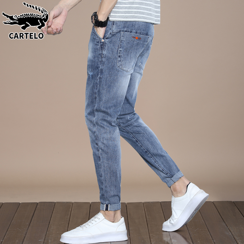 牛仔裤采用了优质的牛仔面料,手感柔软,穿着舒适。