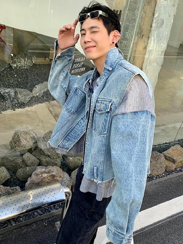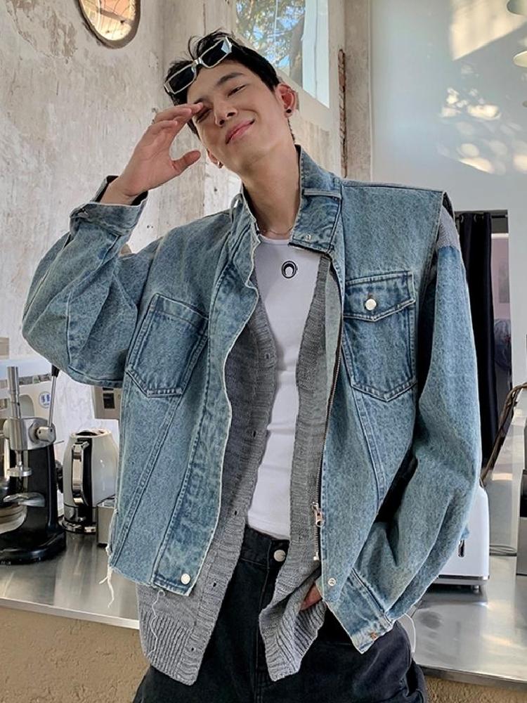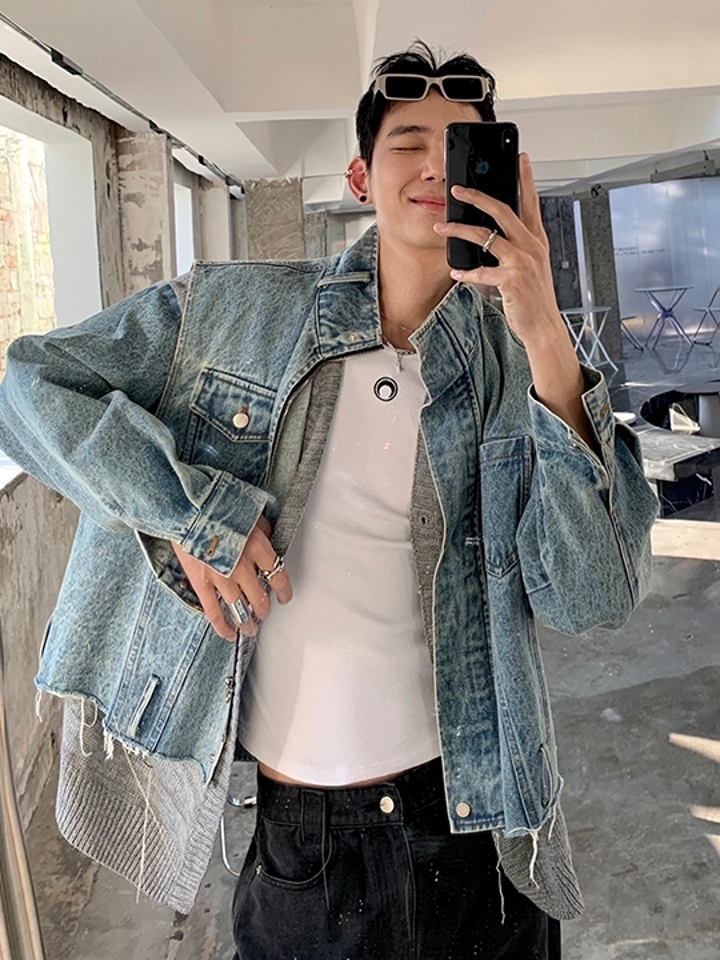 这件外套采用优质做旧牛仔棉面料,手感细腻光滑。上身贴合皮肤。单排扣门襟简洁整洁,穿脱方便美观实用。