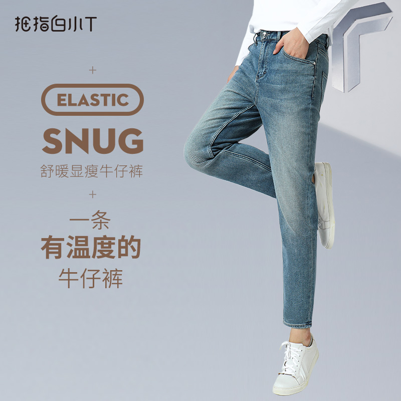 高腰设计,拉长身材比例。高腰牛仔裤,显瘦显腿长。直筒裤型,修饰腿部线条。