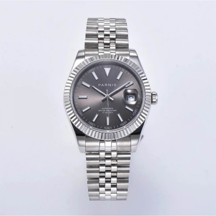 Parnis/柏尼时出品的此款五圈机械表,采用人工合成蓝宝石表镜材质,硬度高,防刮耐磨,坚固耐用。