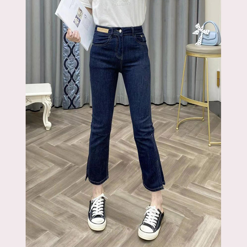 经典的牛仔面料,修身的版型,显瘦又显高,九分的长度,露出脚踝,更显修长,裤脚的毛边设计,增添了几分时尚感,搭配一件T恤,就能美美的出门了。