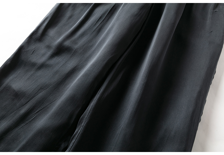 桑蚕丝面料,舒适又透气。西裤版型,修饰腿部线条。宽松裤型,穿着舒适自在。