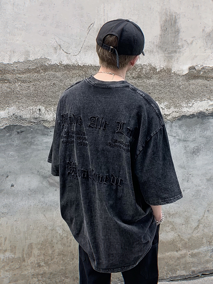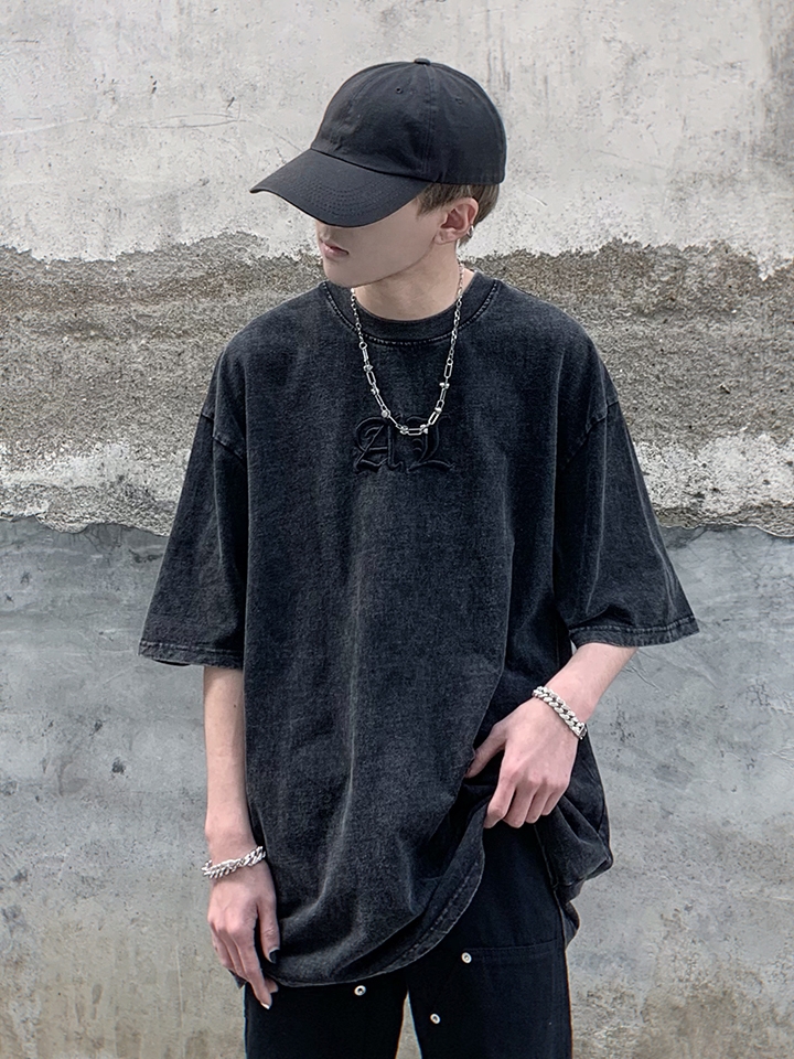 简约百搭的短袖t恤,采用了宽松落肩袖的版型剪裁设计,使穿着更加舒适自在,毫无束缚感。衣身经过水洗做旧工艺处理,使得面料色彩更加均匀,自带复古情调。胸前采用了字母刺绣点缀,提升整体视觉美感,更加立体精致。