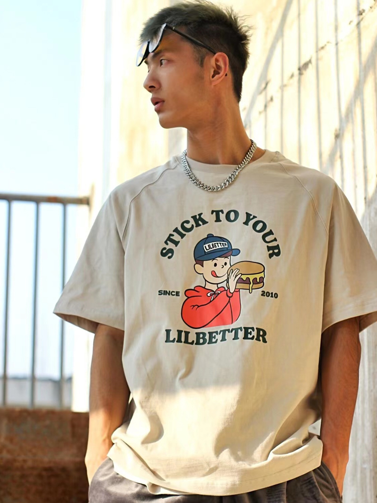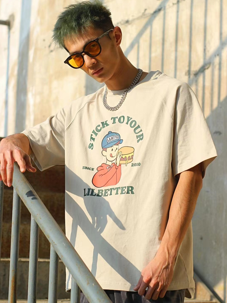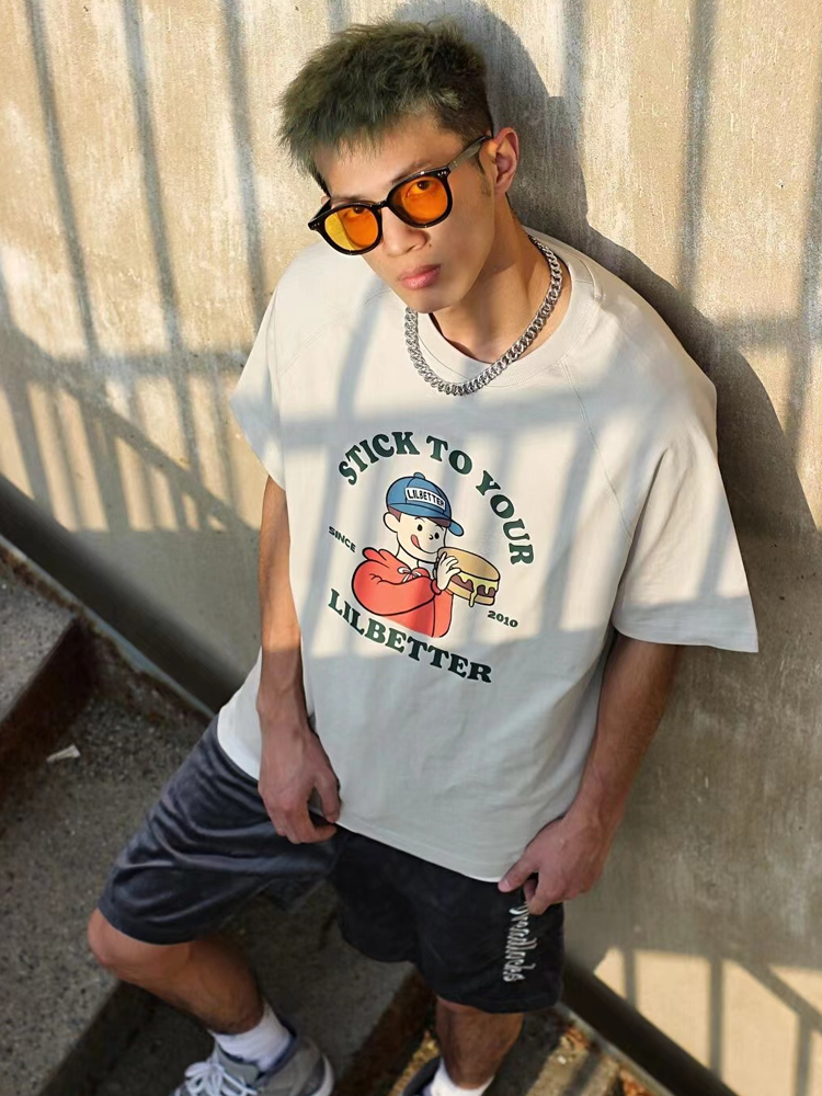 纯棉面料吸湿透气,手感柔软顺滑,肌肤舒适无刺激。宽松的圆领和袖口设计,上身不紧绷,穿出自在潮人风格。