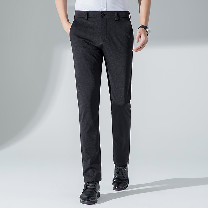 这款休闲裤选用了冰丝面料制作,穿着舒适透气,具有良好的透气性,搭配上修身的版型设计,上身效果非常好,尽显男士的干练气质。
