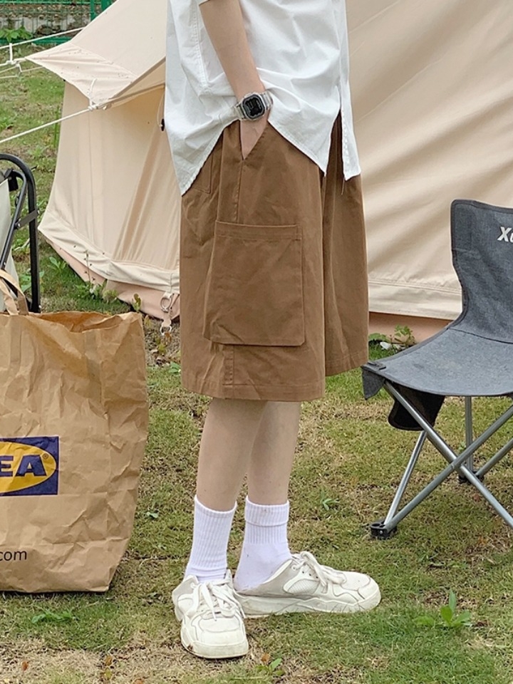百搭复古版型五分休闲裤,五分直筒版型,适合多种身材,很好驾驭,彰显复古的工装风,咖啡色多口袋个性经典不张扬。