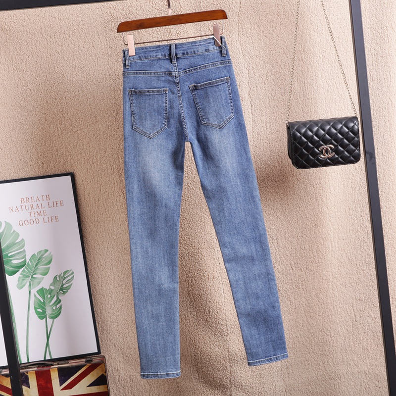 高腰设计,拉长身材比例。高腰牛仔裤,显瘦显腿长。直筒裤型,修饰腿部线条。