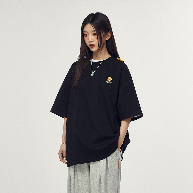这款短袖T恤采用了经典的圆领设计,穿着舒适,不易变形。