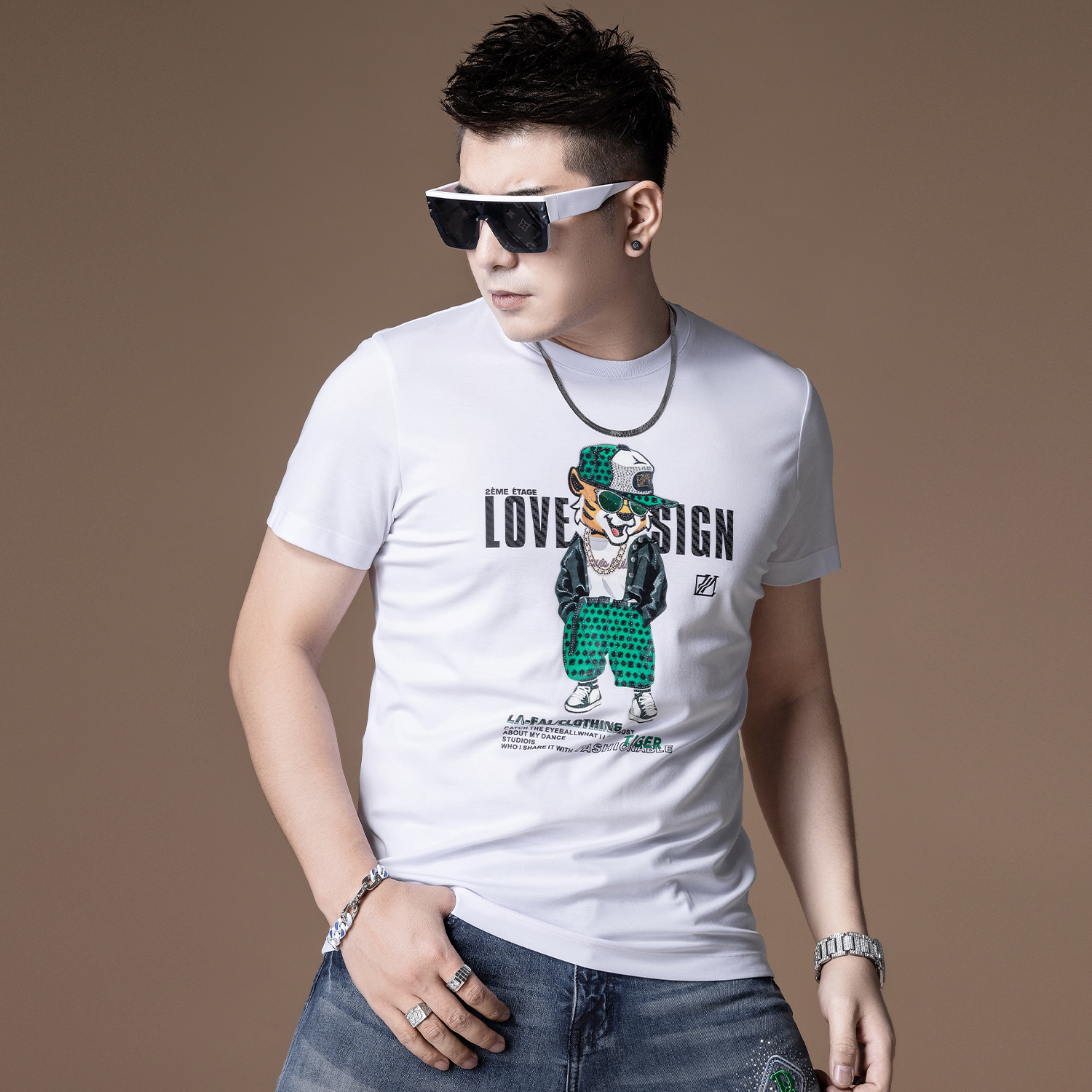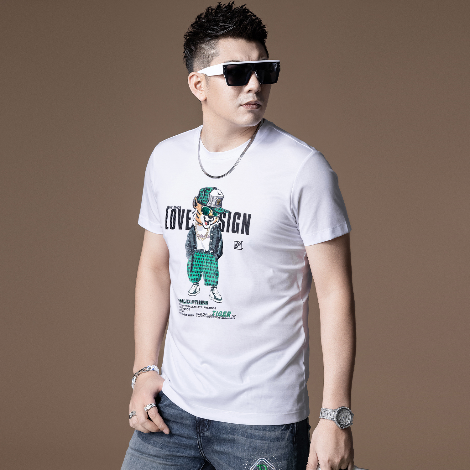 这款t恤是简约的风格,宽松的版型,时尚百搭,胸前的字母印花,很有个性,搭配牛仔裤或者短裤都很好看。