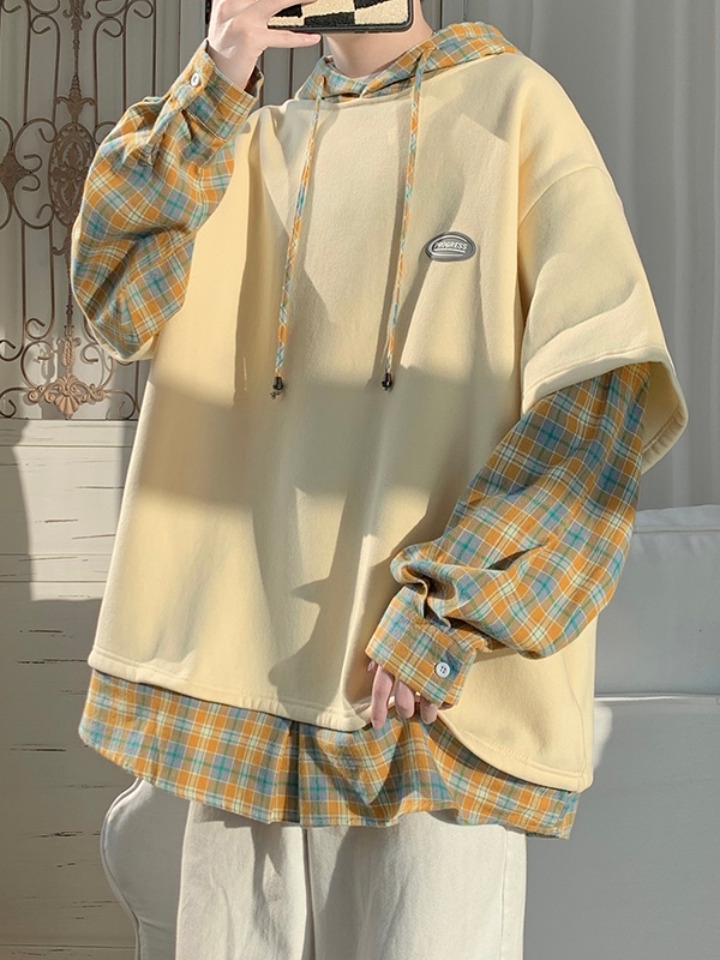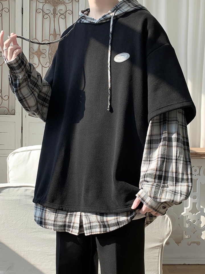 简单的卫衣版型因拼接格纹衬衫而变得时尚起来,不但呈现出假两件的即视感,让层次更为丰富,搭配胸前大面积啊的字母印花,充满高街时尚感,轻松打造宝宝的型男气质。