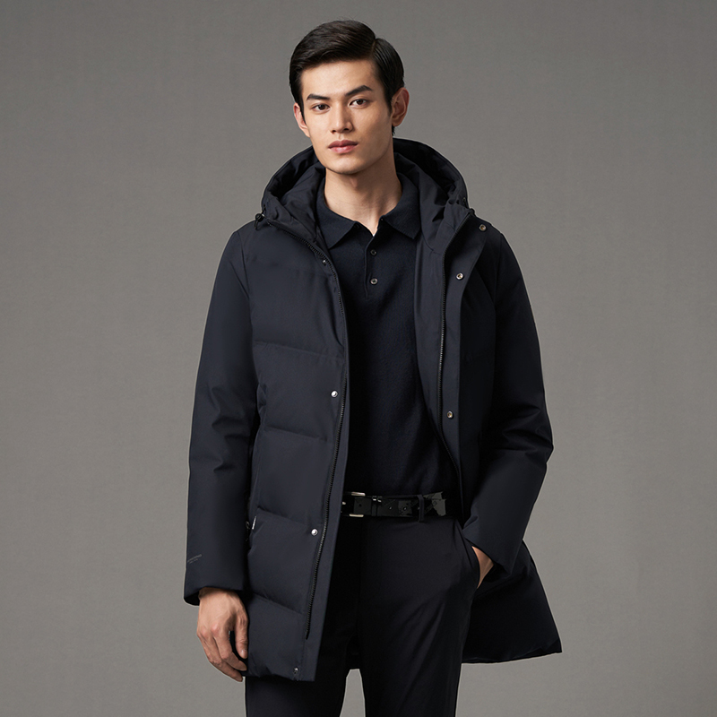 连帽的设计,保暖又时尚,中长款羽绒服,保暖舒适。