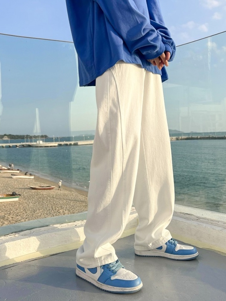 韩版休闲阔腿牛仔裤,宽宽松松的版型,穿着很洋气,松紧腰围穿着舒适又自在,带着点个性的风范,显出年轻人的风采哦。