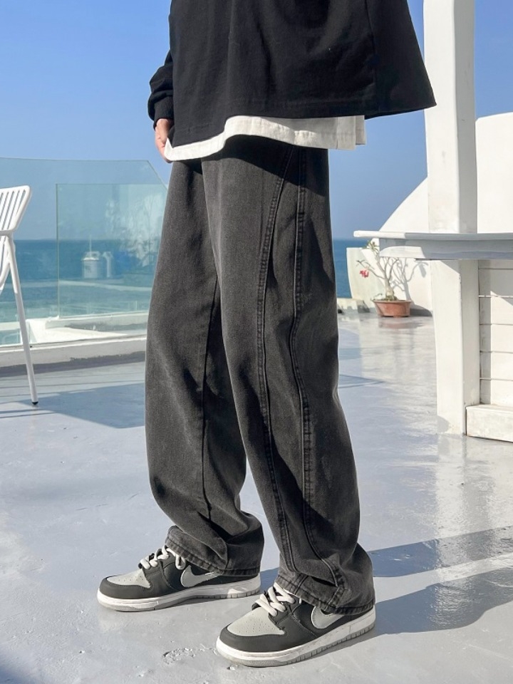 不用担心穿搭还很不容易过时的牛仔裤是衣橱里面不可或缺的存在,设计师为了迎合当下的潮流趋势,做了直筒的阔腿造型。