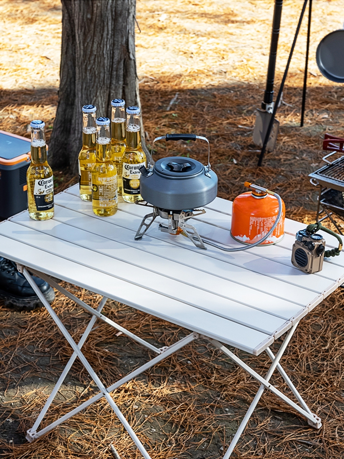 铝制支架,结实稳固,轻便耐用。桌腿两种高度,方便实用。巧妙的折叠设计,方便易携。铝合金折叠桌收到了,质量很好,携带方便又轻又稳,天气暖和可以带着孩子们出去野餐,结实耐用。