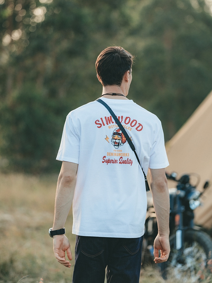精选优质纯棉短袖T恤,穿着清新透凉,面料柔软亲肤,舒适自然,简单的圆领设计,迎合颈部线条,简约的版型设计,前卫呈现景象印压版图,简约美观。