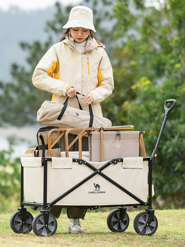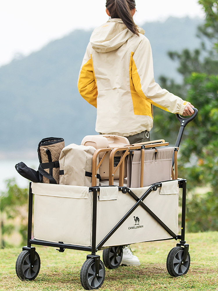 轻便型折叠推车,可折叠的设计,折叠后体积小巧,方便携带,万向轮设计360°旋转无死角,使用上十分方便。