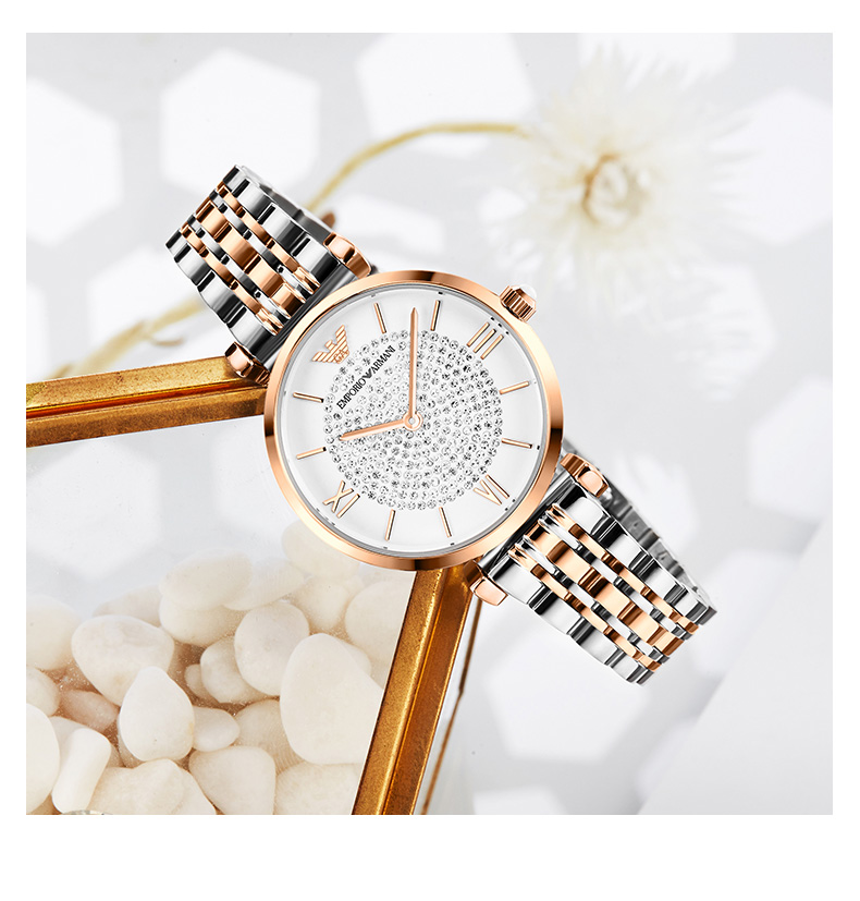阿玛尼的这款女士手表,采用了经典的黑白配色,搭配上金色的表盘,让手表更显奢华。