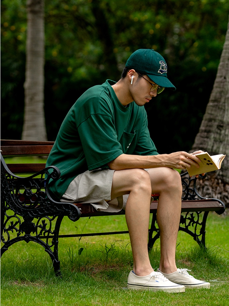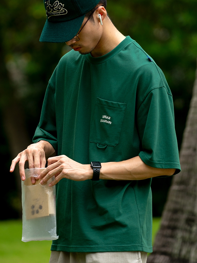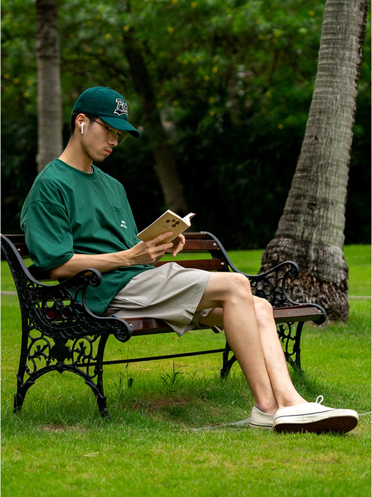 在我这里夏日穿棉短袖就是yyds,我真的喜欢Urban这件墨绿色的短袖了,一眼看上去就很复古,而且这个颜色对黄黑皮的我也很友好,怎么搭都好看,理性又干练。