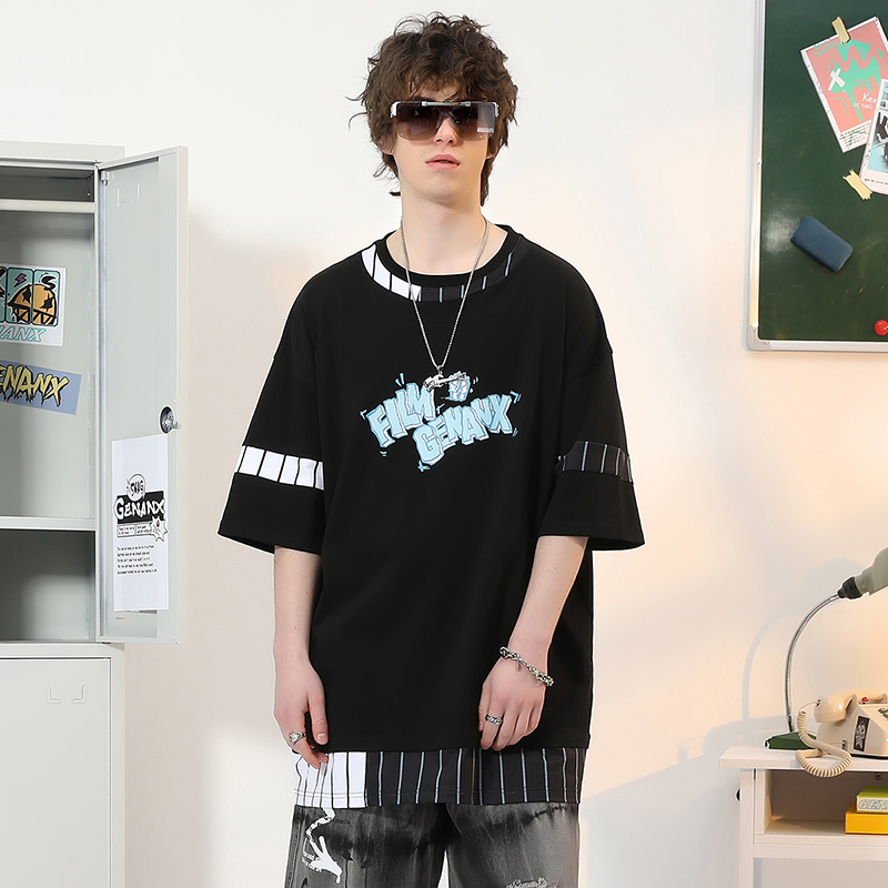 这款t恤是简约的风格,宽松的版型,时尚百搭,胸前的字母印花,很有个性,搭配牛仔裤或者短裤都很好看。