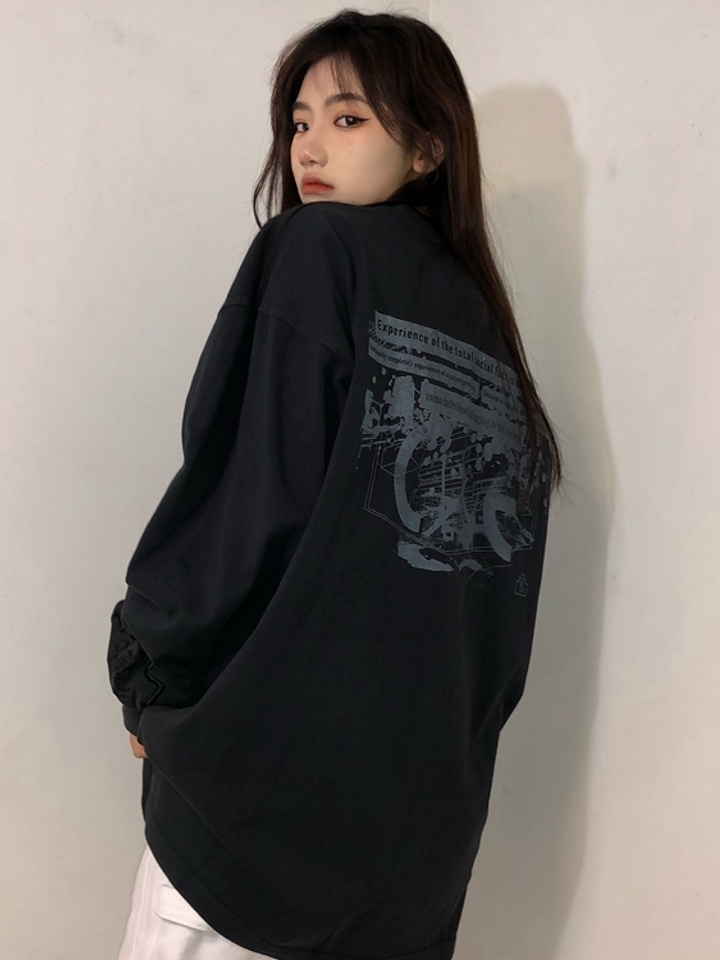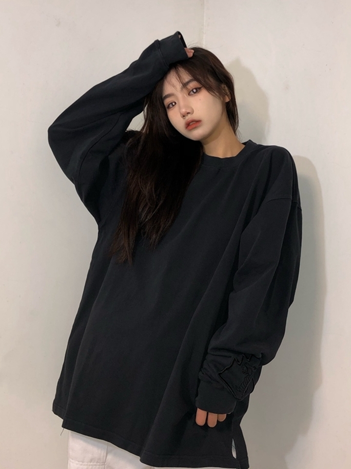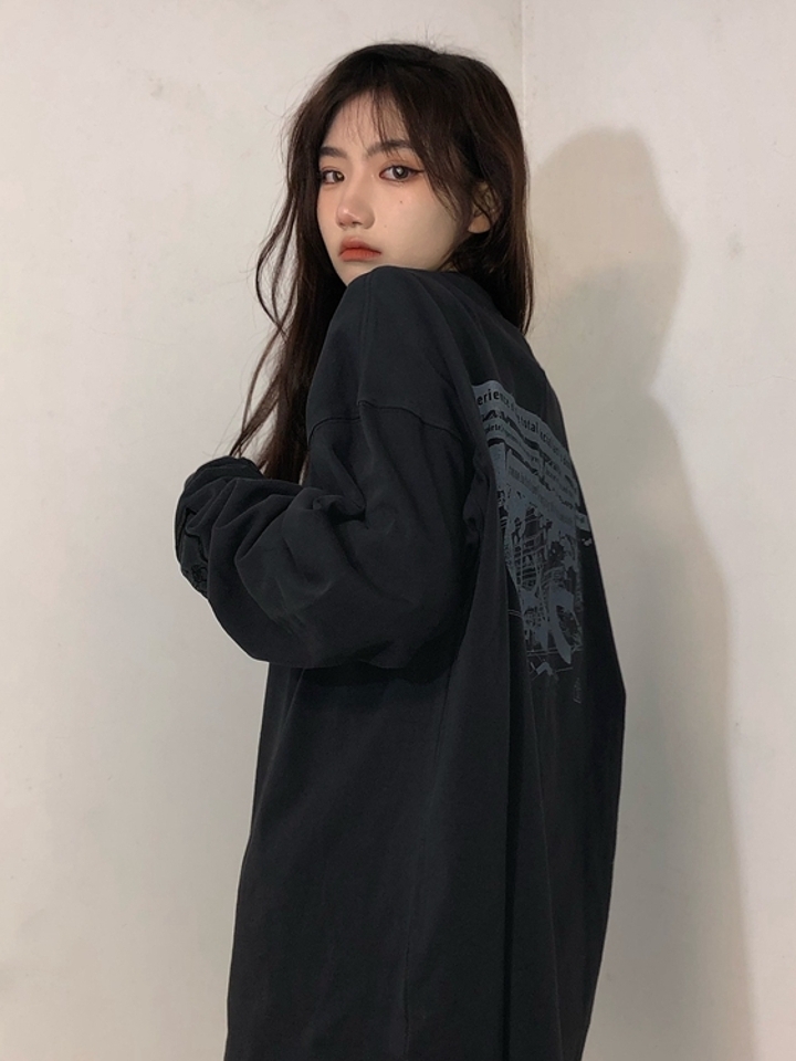 这件款式通常搭配宽松的长裤,采用蜡染的工艺,比较特色,充满街头感的长袖T恤采用纯棉材质打造,暗黑系的字母印花拼接撞色宽松长袖,搭配一袭破洞牛仔裤,个性有型!