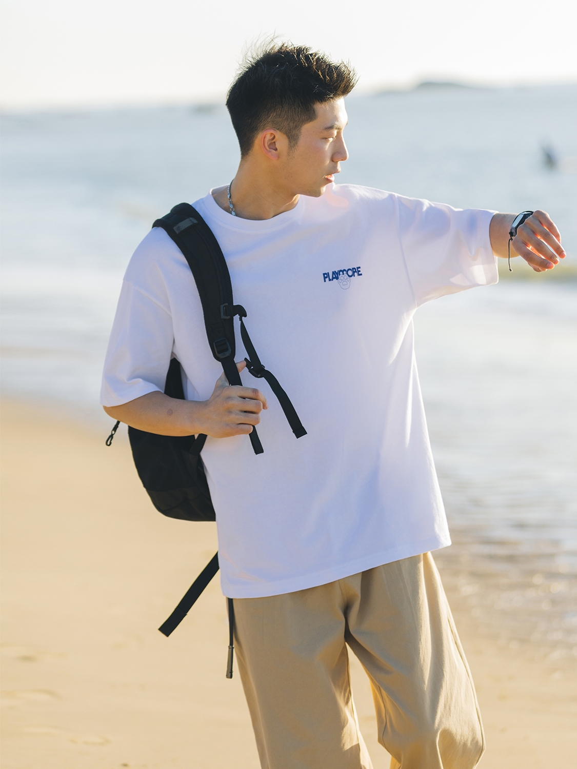 百搭的白色短袖,因为前面的趣味字母印花设计,让短袖瞬间摆脱了单调的境地。简约趣味,让短袖多了时髦感。