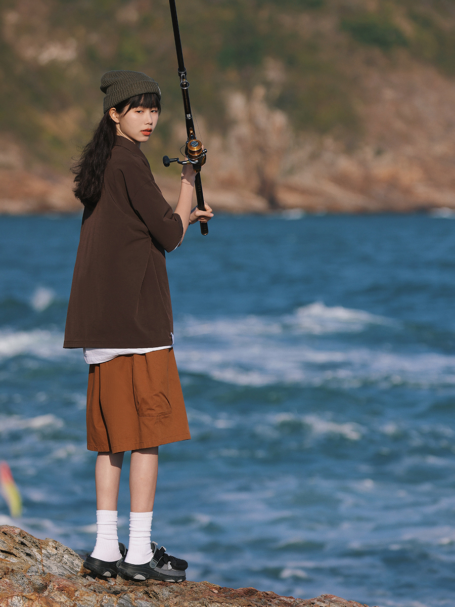 简约的高腰设计,搭配上修身的版型,上身显瘦又显高。