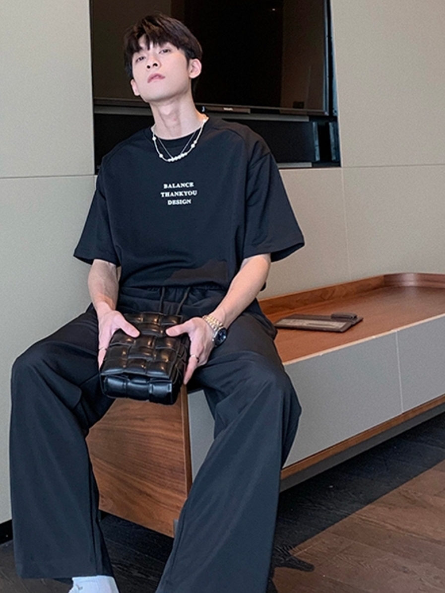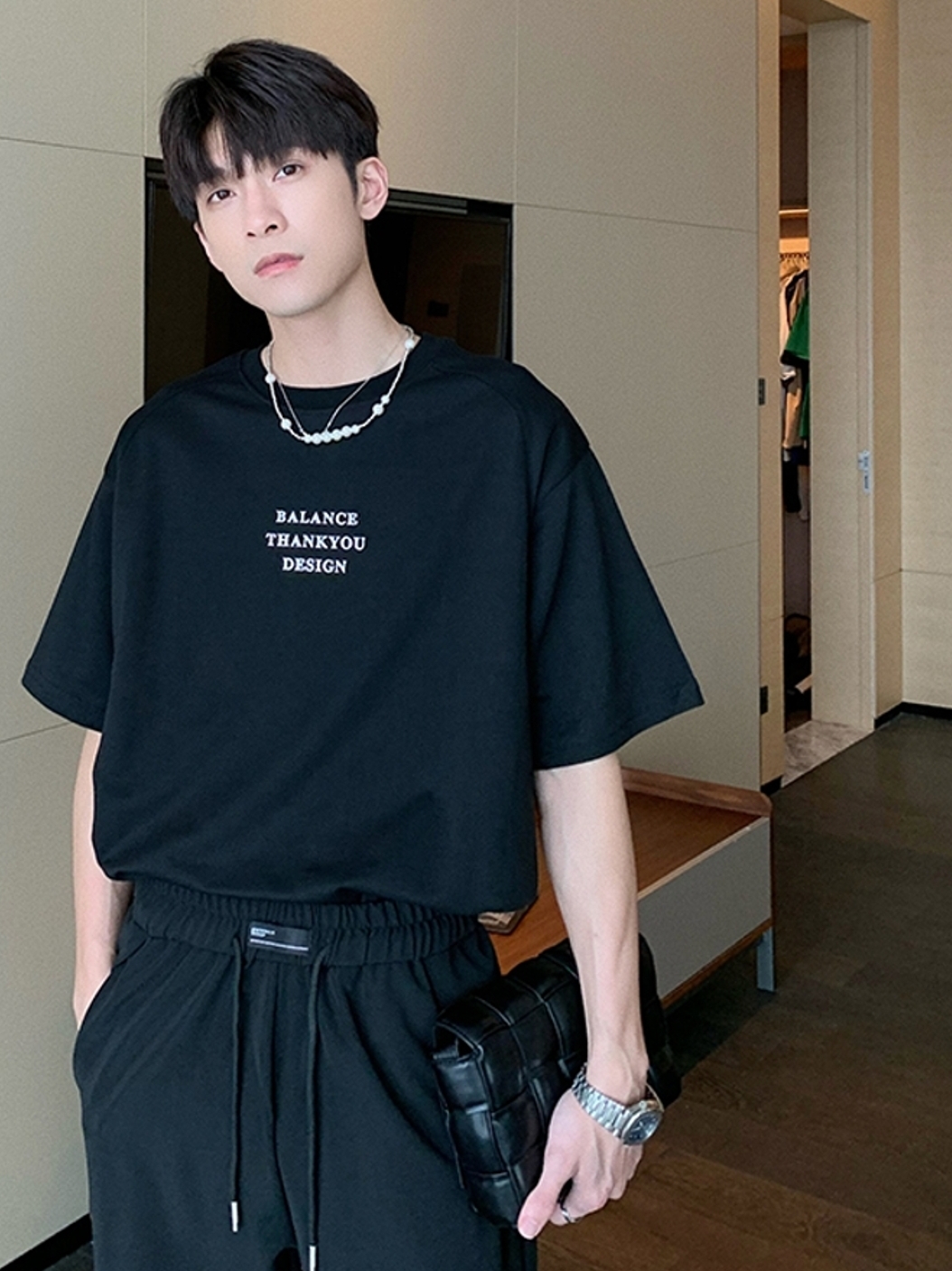 宽松的T恤绝对是男生夏天的必备单品之一了,胸口前的字母印花是很不错的点缀,无论是上班还是休闲穿都没问题。
