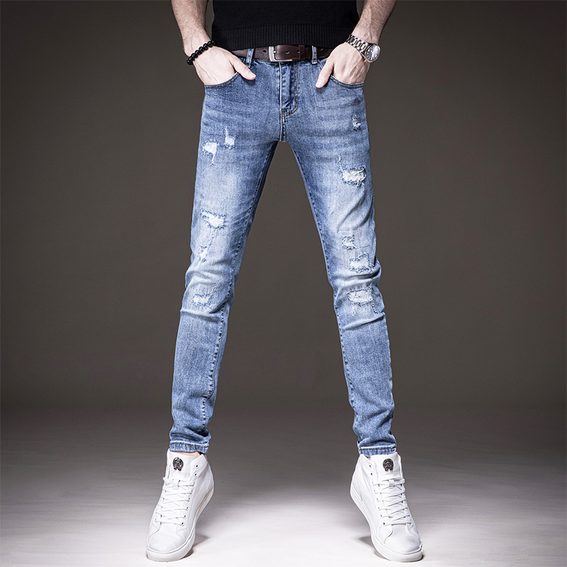 牛仔裤采用了优质的牛仔面料,穿着舒适透气,修身的版型设计,上身效果很好,搭配上一双小白鞋,帅气十足。