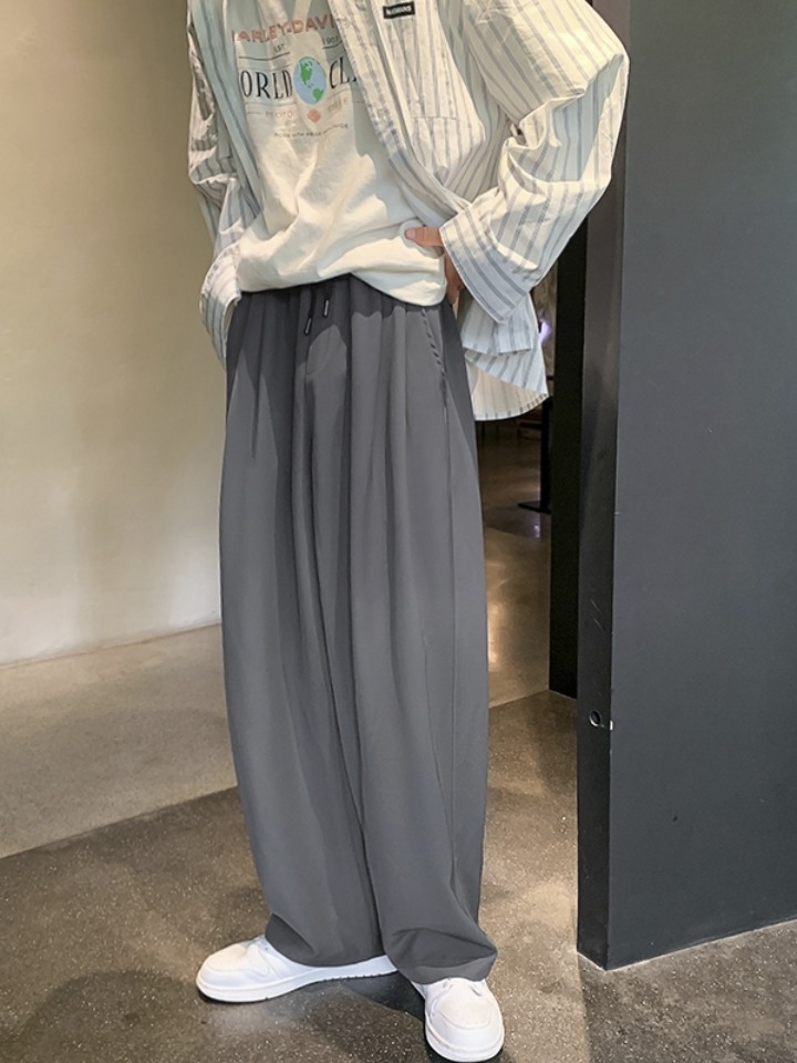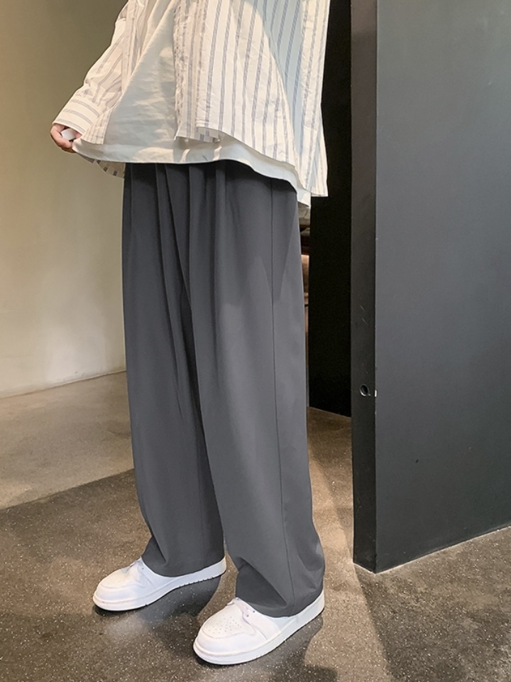 高腰设计,提升腰线,轻松穿出大长腿。腰间的褶皱感,中和西裤的硬朗,增添几分柔美。宽松的版型,修饰臀部线条,休闲慵懒。