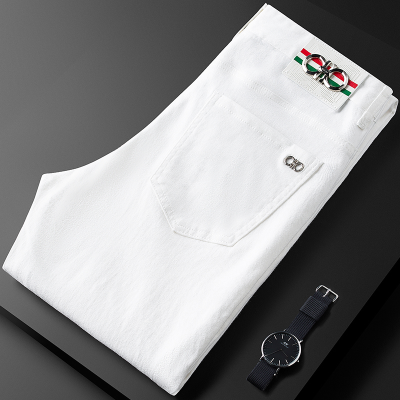 这条牛仔裤采用了修身的版型,上身效果很好,很显瘦,裤脚的毛边设计,更显时尚潮流,搭配一件T恤,就能轻松穿出潮男范。