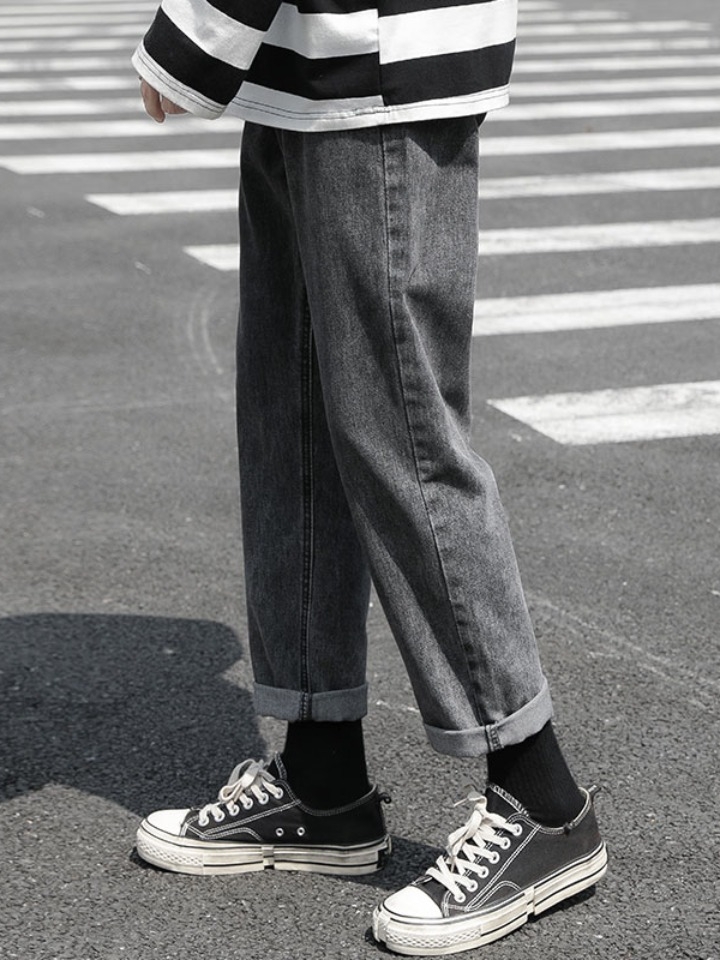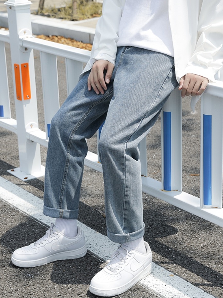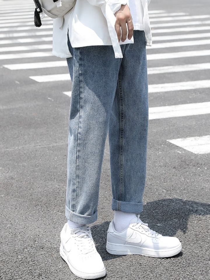 经水洗工艺做旧的蓝色色系,将复古与怀旧结合起来。选用了优质的棉牛仔布面料,质地柔软,穿着亲肤舒适性好。直筒版型的裤身裁剪,视觉上有显瘦的作用
