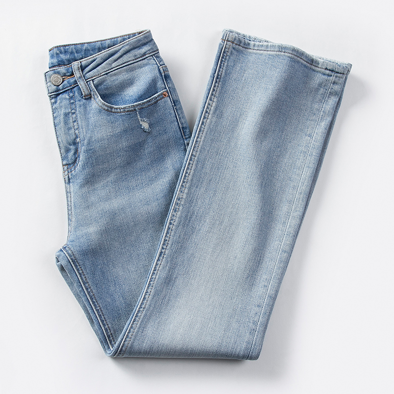 高腰设计,拉长身材比例。高腰牛仔裤,显瘦显腿长。直筒裤型,修饰腿部线条。