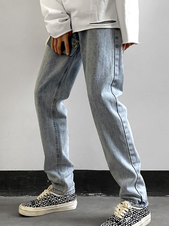 这款美式复古风情的深蓝色牛仔裤,非常的经典百搭,传统的小脚裤设计,搭配各式运动鞋更加休闲时髦,简约的设计不简单的格调。
