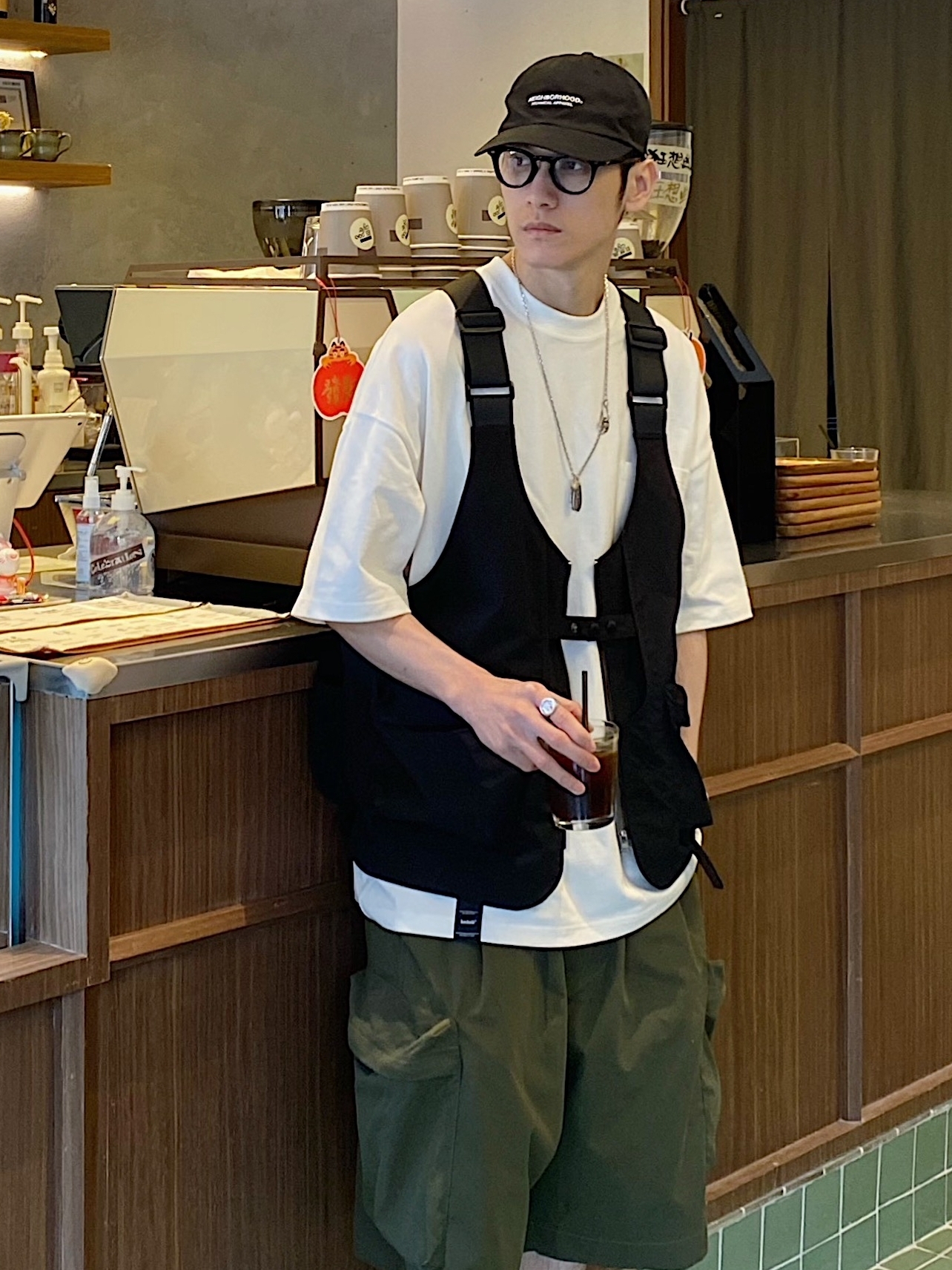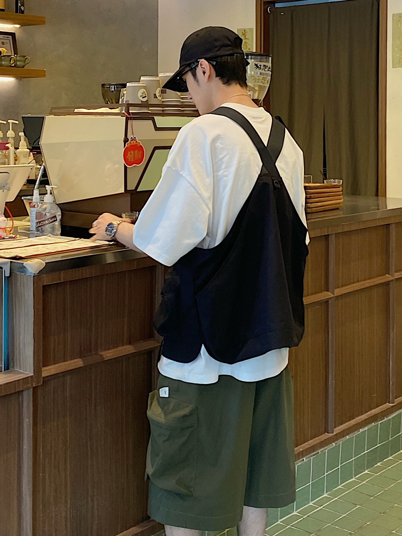工装风感觉的一款马甲,衣服选择的是宽松的版型设计,穿着没有束缚感,而且简单的款式,平时也好进行搭配,同时在衣身上加入了多口袋的设计,让衣服看上去更加的个性时髦。