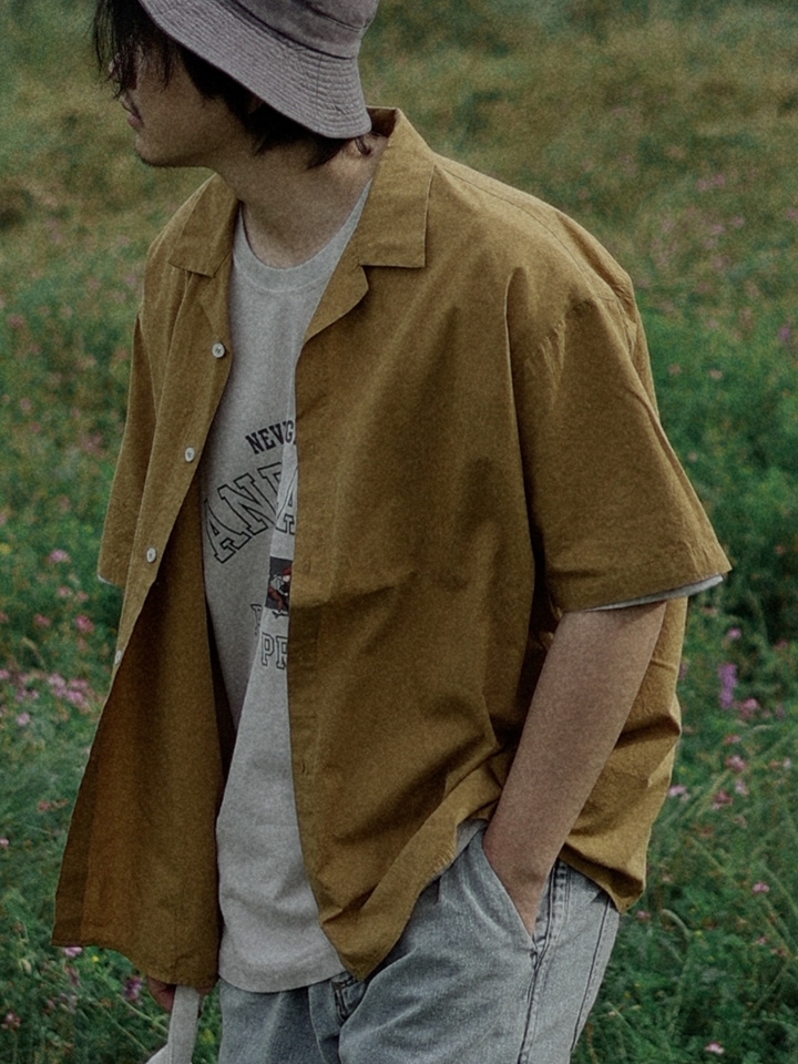 这款日系衬衫,整体简洁大方,帅气的古巴领领口,更是散发着浓郁的复古风情,纯色的衣身加以撞色的钮扣,点亮整体造型。