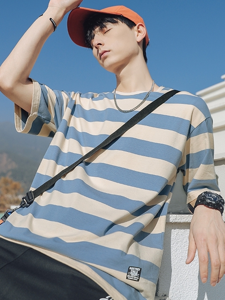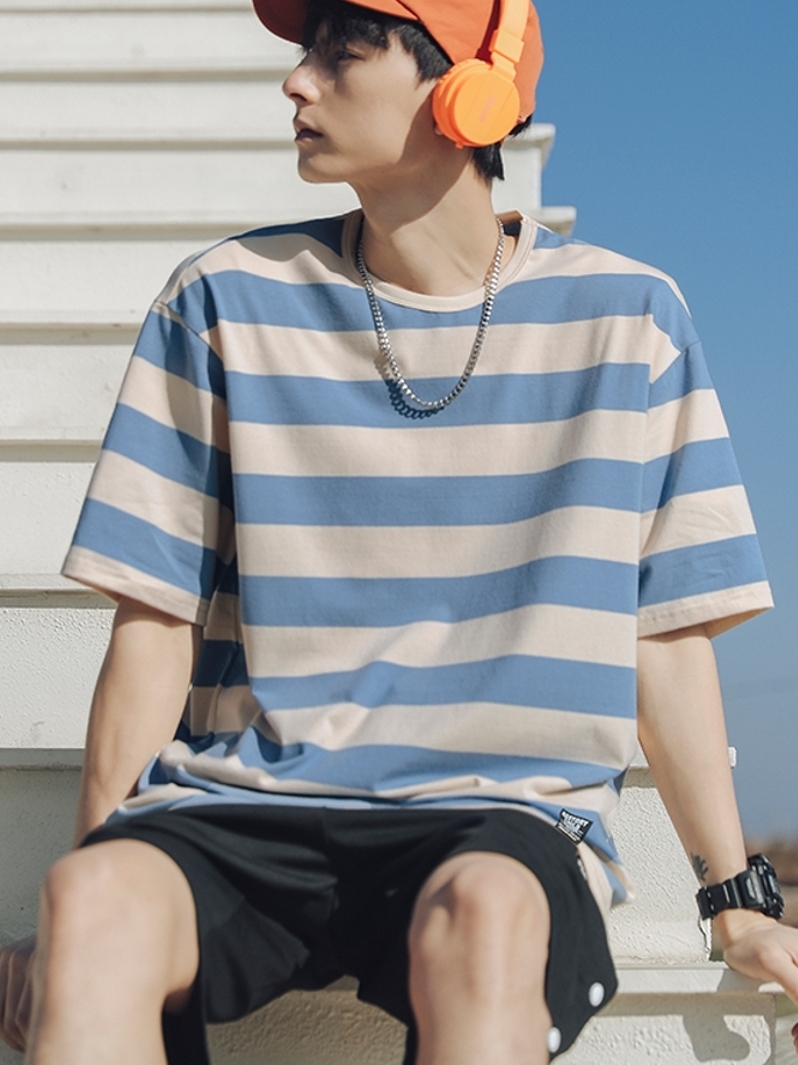 条纹的设计,带来很好的时尚感,同时也能够很好的展现出身材。罗纹的圆领领口的设计,能够很好的修饰脖颈线条,凸显脖颈的曲线。整体休闲的版型,能够很好的展现整个人的气质。