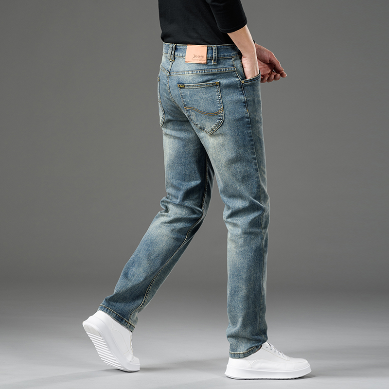 高腰设计,拉长身材比例。高腰牛仔裤,显瘦显腿长。直筒裤型,修饰腿部线条。