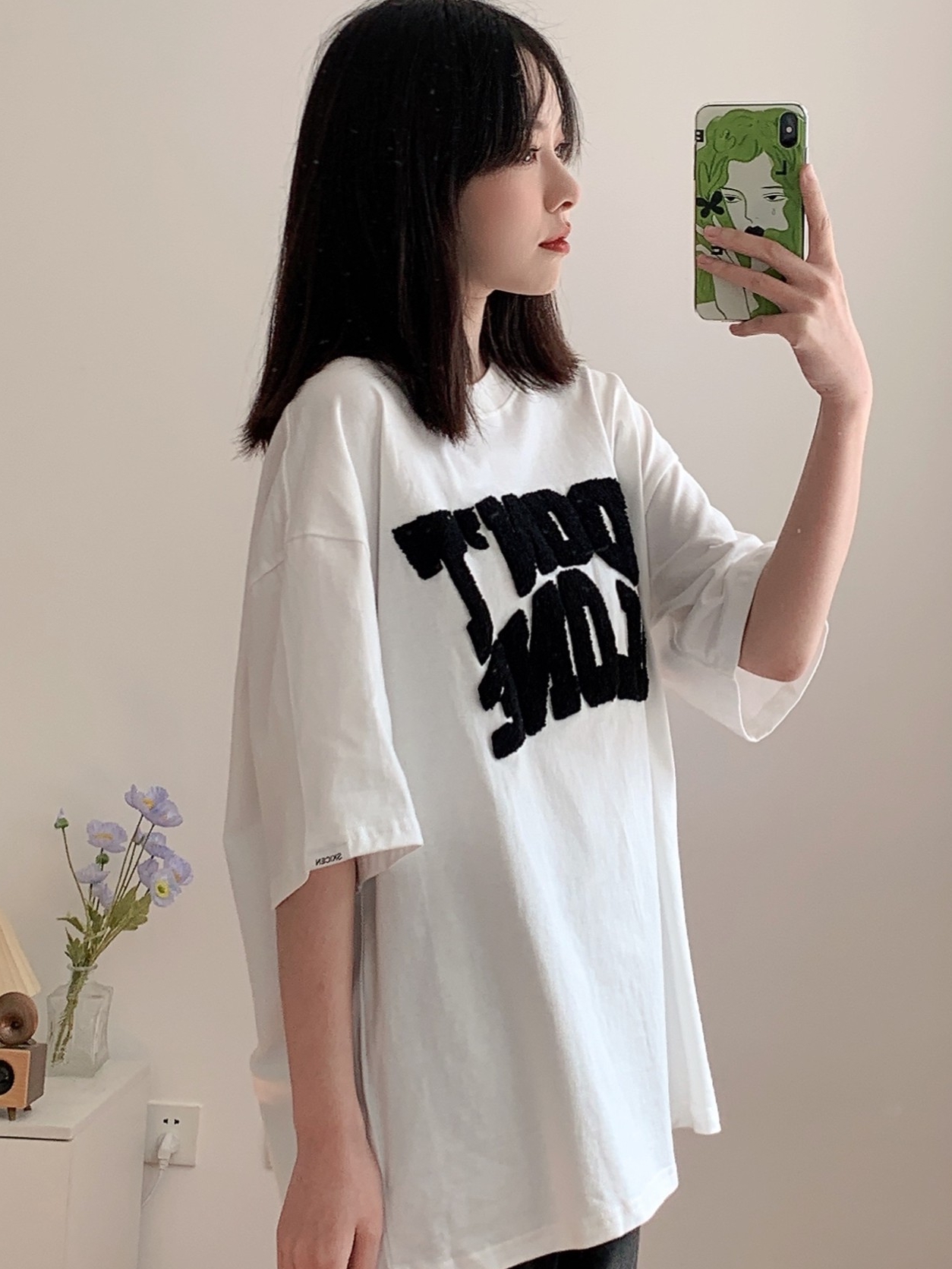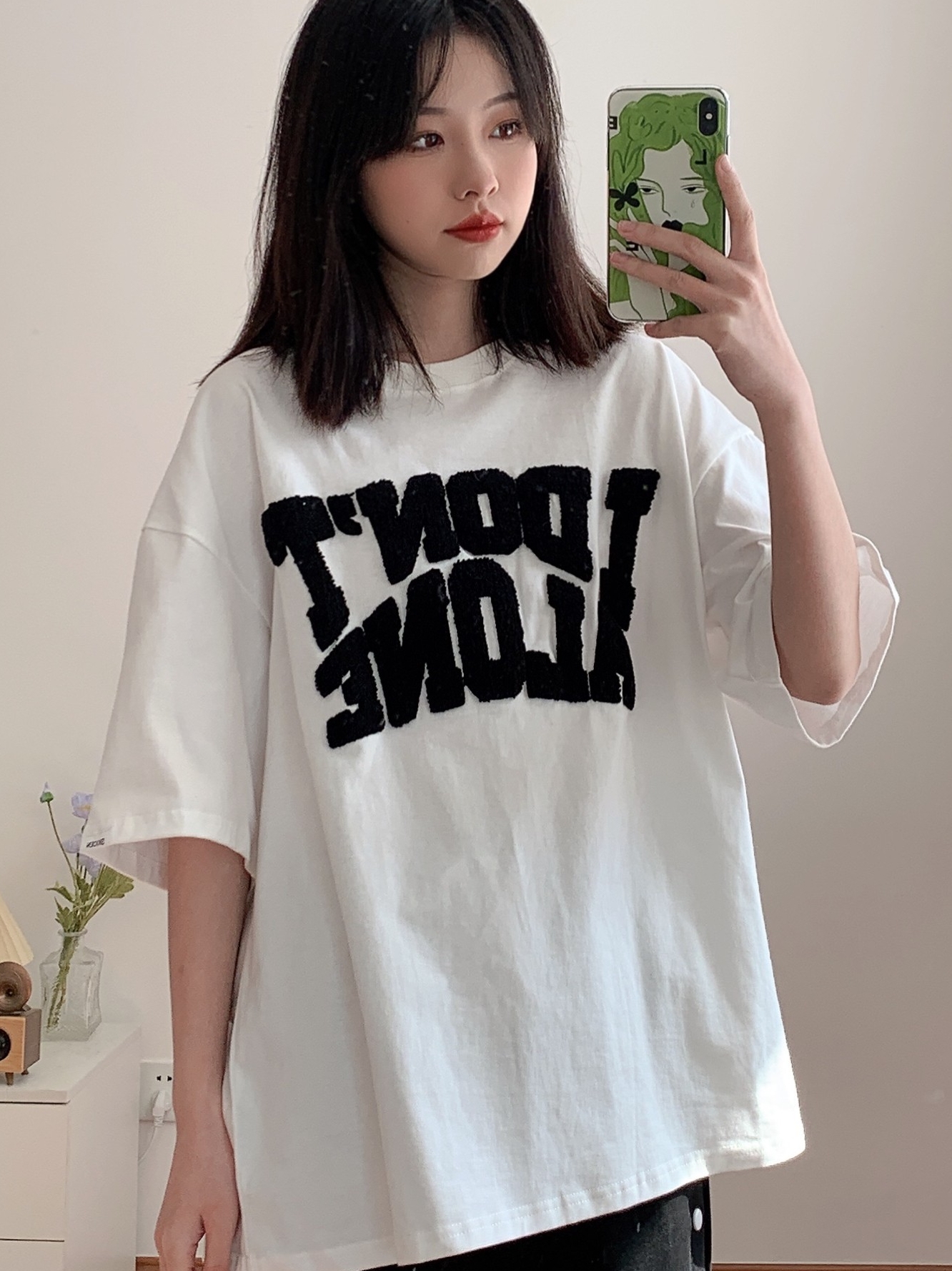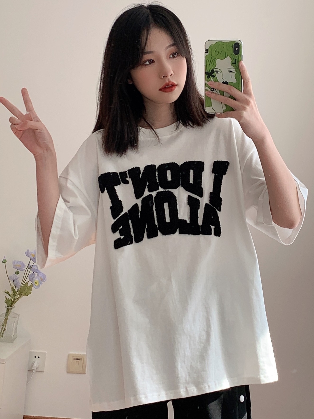 经典的版型宽松不挑人,修身显瘦,采用优质的面料,柔软亲肤,吸汗透气,穿着舒适,3d立体剪裁,上身效果好,让您的身材更加优美。撞色字母印花设计,增加了t恤的色彩感和层次感。