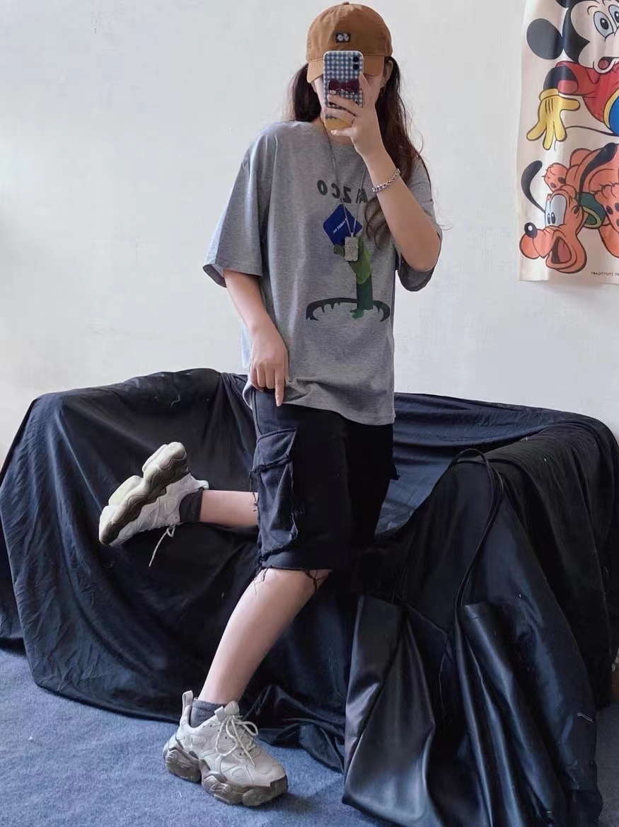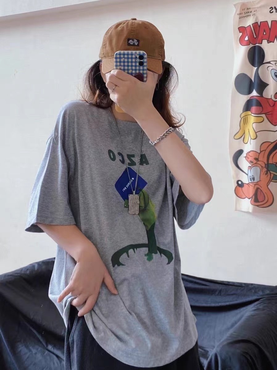 这款t恤是简约的风格,宽松的版型,时尚百搭,胸前的字母印花,很有个性,搭配牛仔裤或者短裤都很好看。