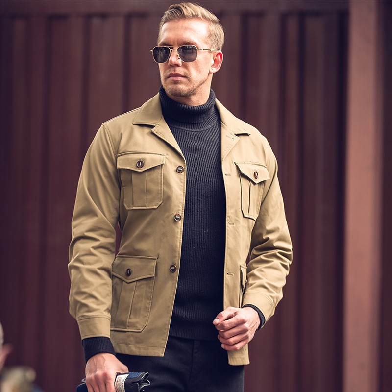 夹克版型,穿着帅气有型。经典夹克版型,时尚百搭。翻领设计,彰显男士魅力。