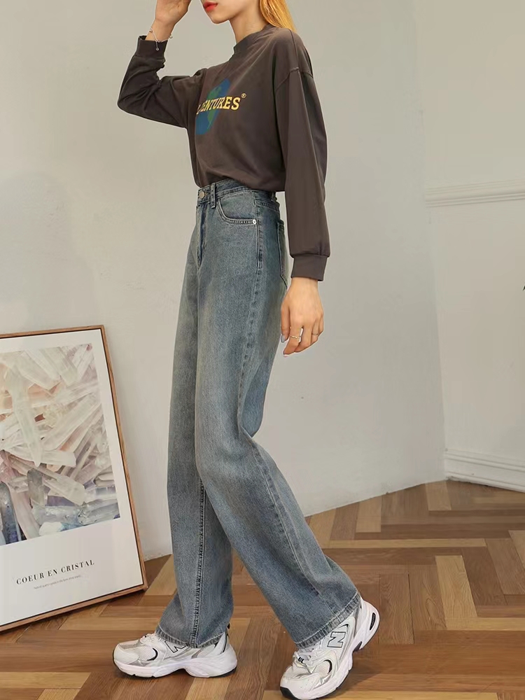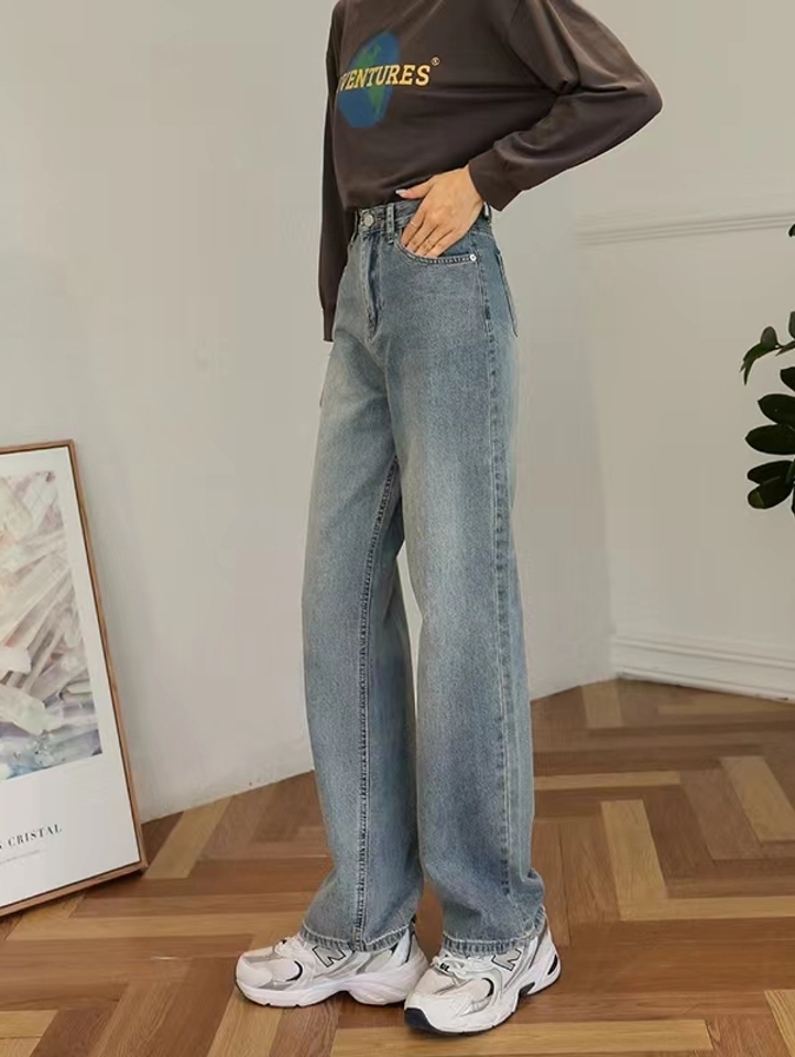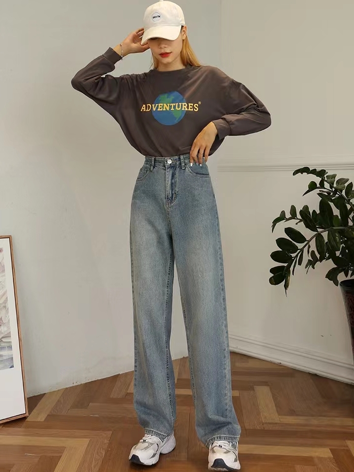 牛仔面料带有工装质感复古做旧,整体风格极具街头潮范,阔腿的版型不仅修身的同时还为你遮肉显瘦,宽阔的裤腿设计,使腿线变得笔直均匀,整体更显高挑修长。