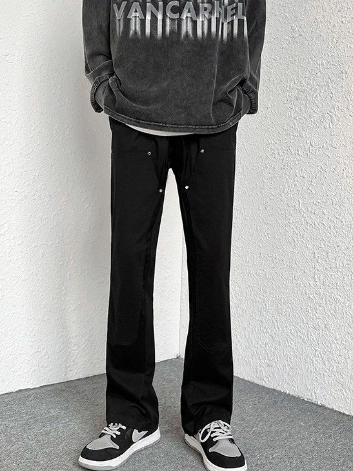 牛仔的舒适与耐磨性,添加了少量的氨纶,具有良好的弹性性能,穿着亲肤舒适不紧绷。合身版型的微喇裤。
