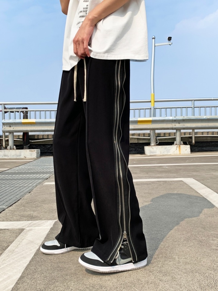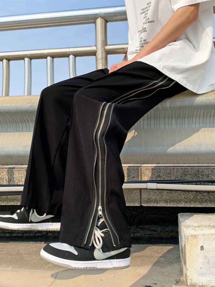 阔腿裤是时下服装界中大热的单品之一,顺畅利落的线条剪裁,腰头贴服肌肤,高腰头拉长身材比例,臀部一字型袋口有美臀效果。两侧口袋实用性强。拖地式的长度更适合高个子女生演绎,知性范十足。
