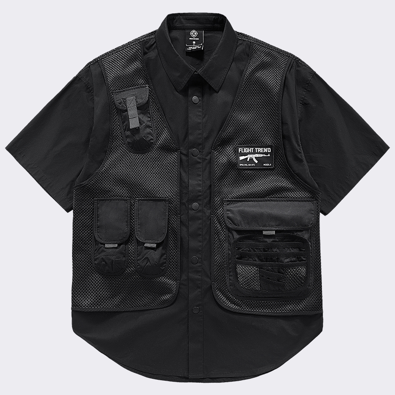 多口袋设计,实用又美观。衬衫翻领,修饰颈部线条。衬衣版型,穿着挺括有型。