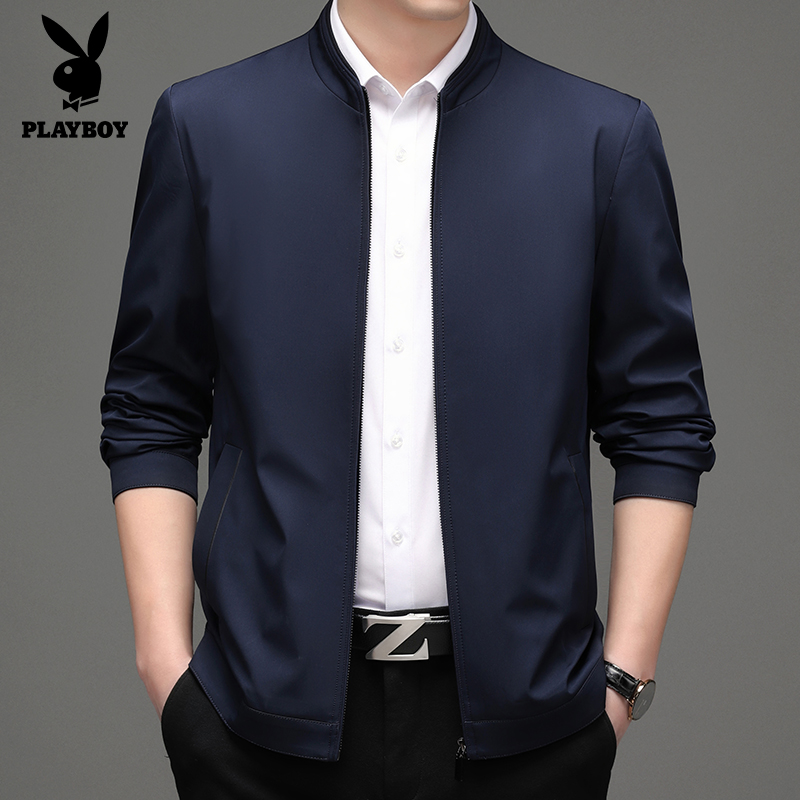 花花公子商务夹克外套,经典的小立领设计,修饰脖颈线条,凸显优雅气质。