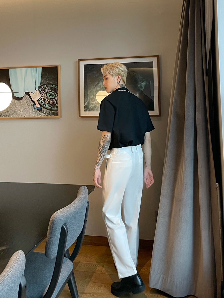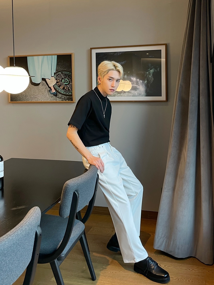 很休闲的一件衣服,搭配上一条阔腿裤,尽显休闲感,再穿上一双皮鞋,青春文艺范儿十足,就是阳光少年的感觉啦~